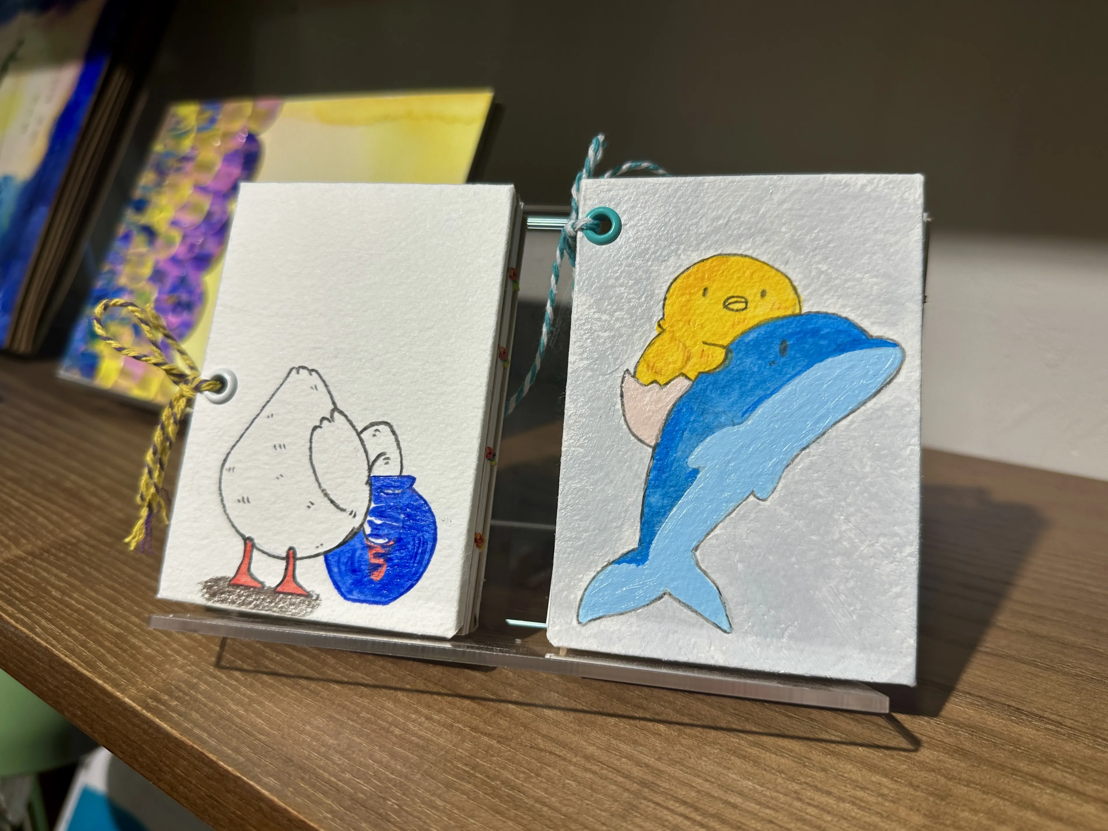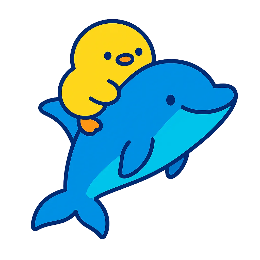 내가 병아리이고 라우는 돌고래라 우리 캐릭터로 병아리가 돌고래를 타고 있는 그림을 완성했어.