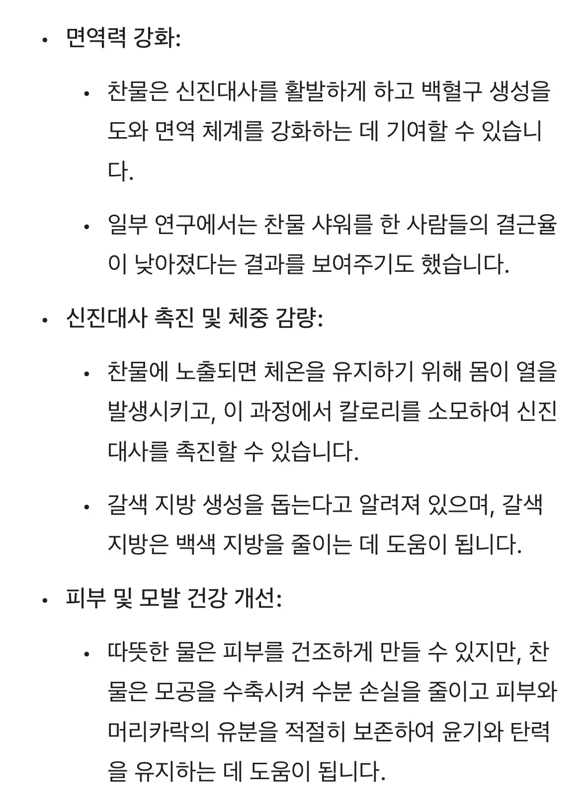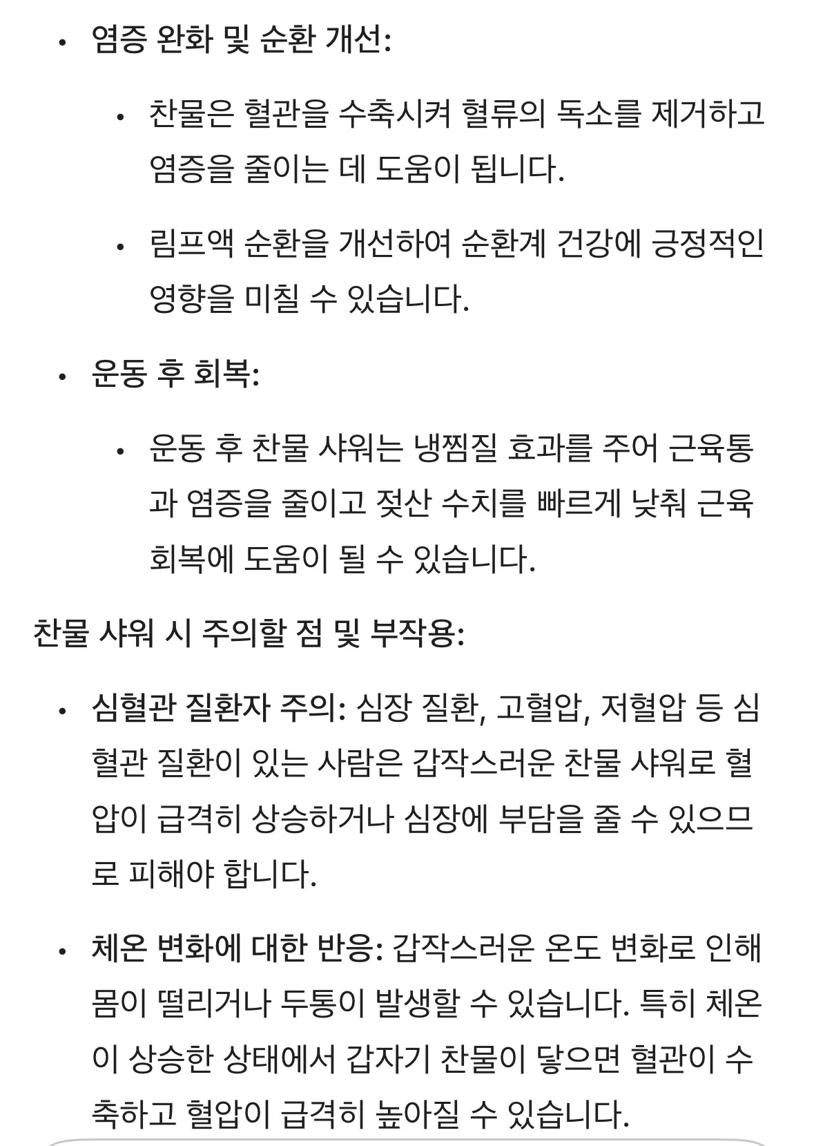 콜드샤워(찬물샤워) 장점 및 주의사항