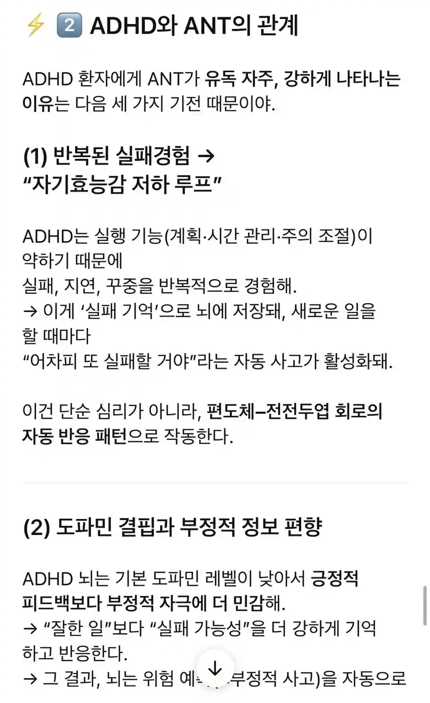 ADHD에게 흔히 많다는 ANT(자동부정사고)에 대해서 ADHD 관련 학술 자료를 바탕으로 정리한 내용 공유합니다.