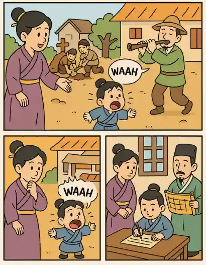 처음엔 묘지 근처에 살아서 장례 풍습만 따라 하던 아들을 보고, 시장 근처로 이사했더니 장사꾼 흉내를 내더랍니다. 결국 서당 근처로 옮기자 비로소 공부에 집중하게 되었죠. 이처럼 환경이 아이의 배움과 습관을 결정한다는 사실을 일찍이 깨달은 거예요.