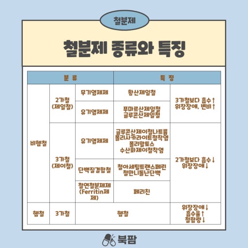 아래 철분제 종류와 특징을 참고해보세요.